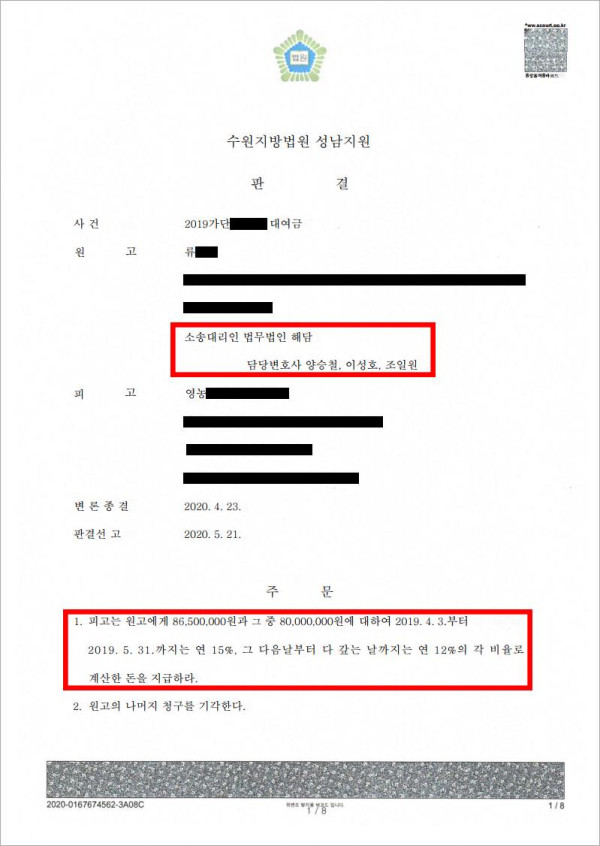 [민사] [대여금] 차용증 없는 대여금 사건 승소